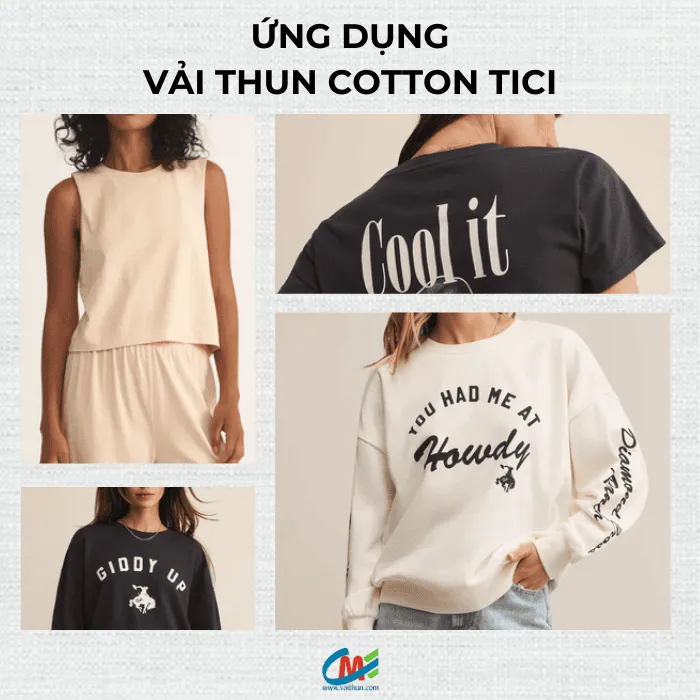 Với những ưu điểm nổi bật, vải cotton tici được ứng dụng rộng rãi trong nhiều lĩnh vực của đời sống: