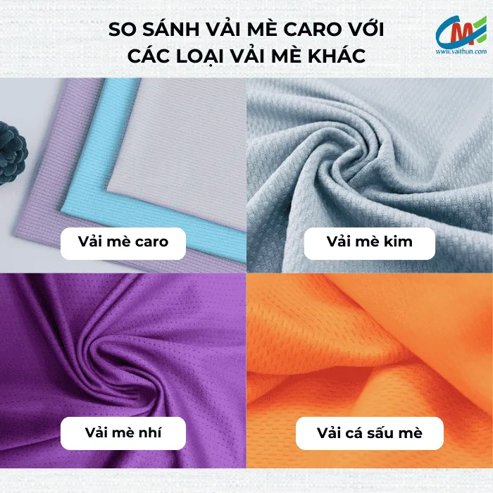 Tiêu chí | Vải mè caro | Vải mè kim | Vải mè nhí | Vải cá sấu mè |
