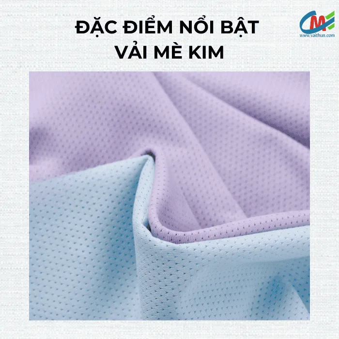 Vải mè kim là loại vải dệt kim phẳng hoặc tròn, có bề mặt nhiều lỗ nhỏ li ti như hạt mè. Điểm đặc biệt là vải được dệt dày, khiến các lỗ nhỏ và thon dài như kim. Vải mè kim làm từ 100% Polyester nên bền, chống nhăn và thoáng khí.